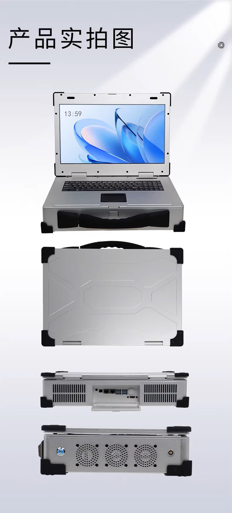 为了达到上述设定,军用加固笔记本采用了特殊设计: